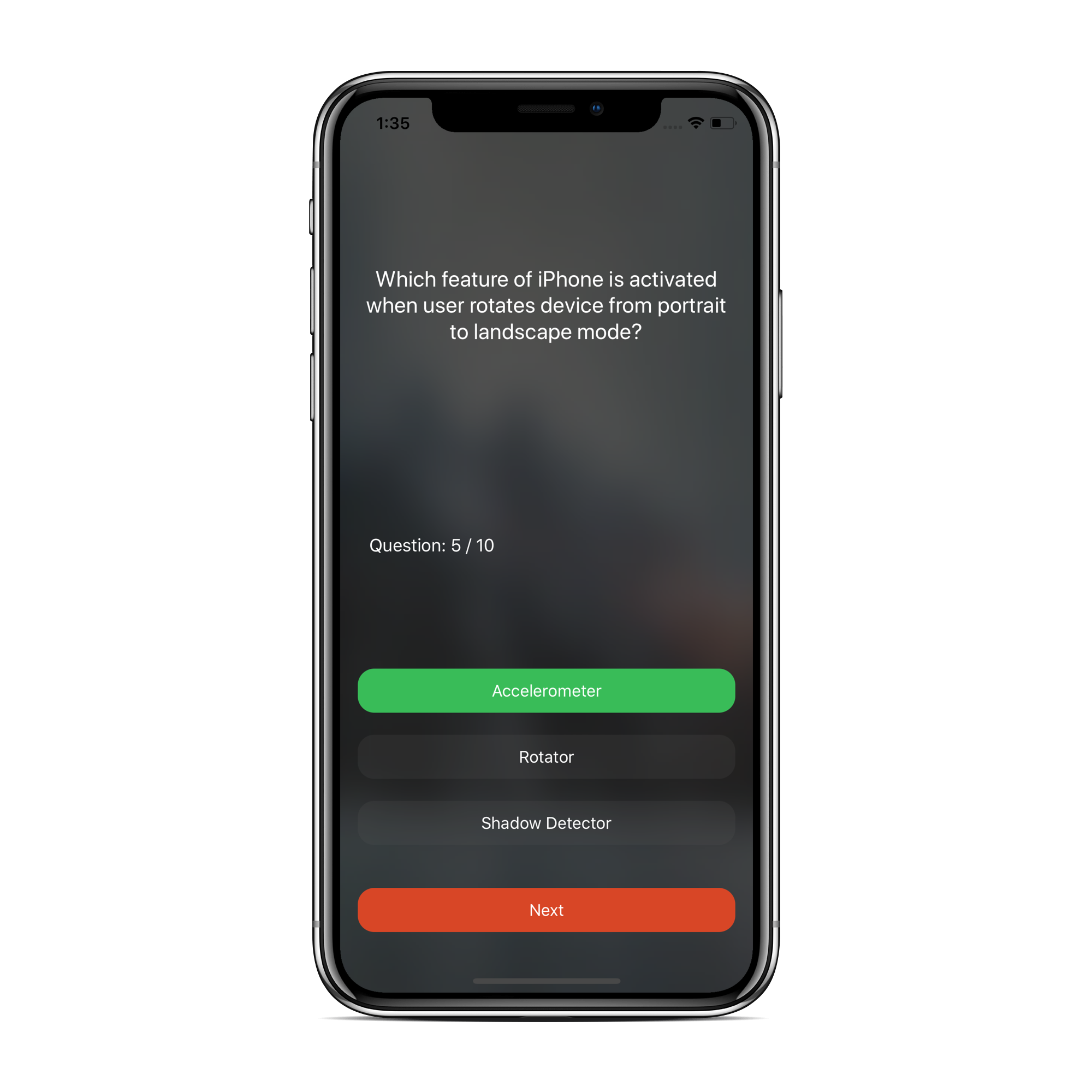 Interactive iOS development learning app with practice and quiz modes for interview preparation.